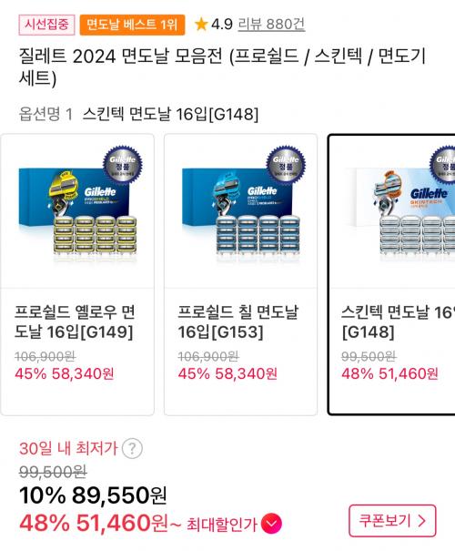 [11번가] 질레트 2024 면도날 모음전 (프로쉴드 / 스킨텍 / 면도기세트) > 국내핫딜