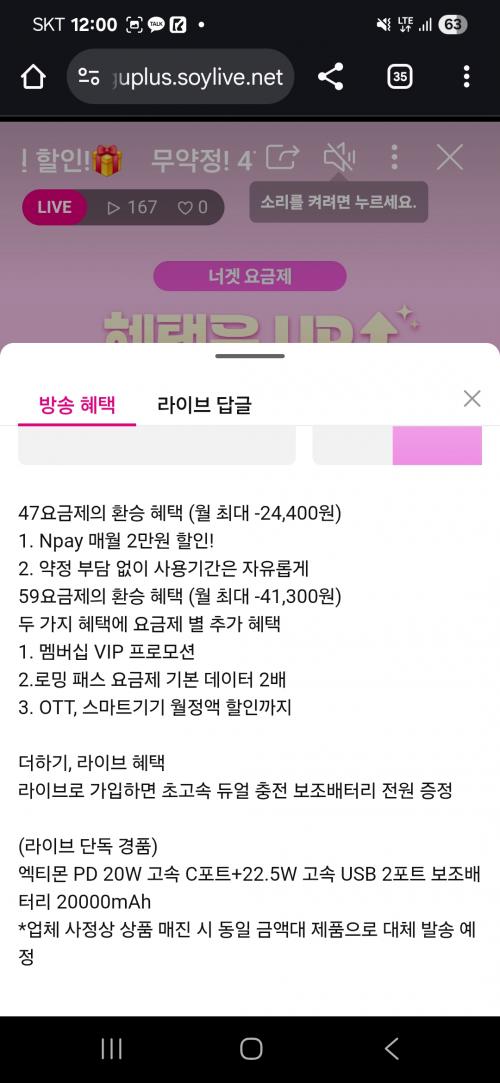 12시부터 유플러스 너겟요금제 라이브 합니다.