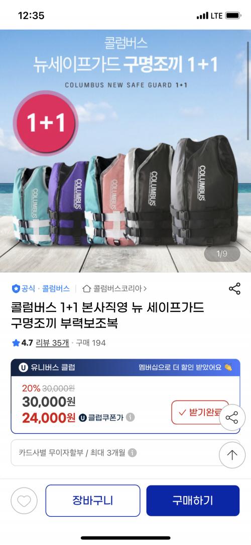 [지마켓] 콜럼버스 뉴 세이프가드 구명조끼 1+1 (28,500원/무배) > 국내핫딜
