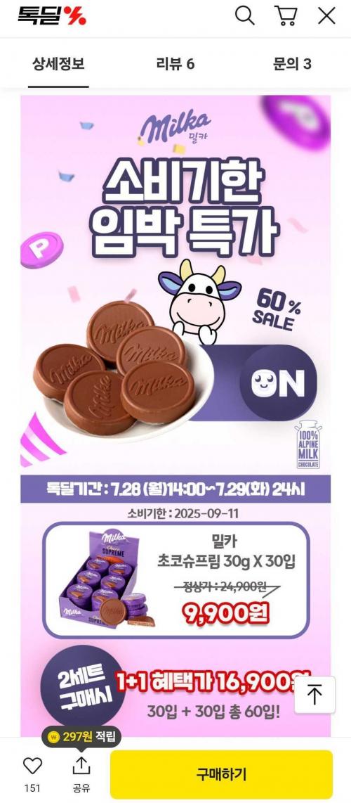 [카카오] 밀카 슈프림 30g 30개 (9,900원/무배) > 국내핫딜