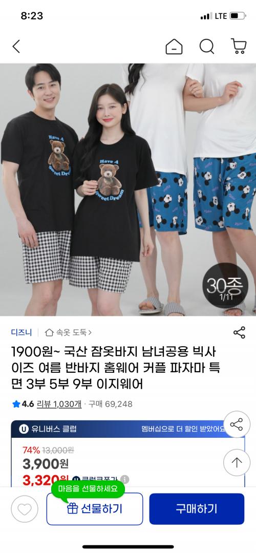 [지마켓] 국산 특면 여름 홈웨어 (3,900원/유배)