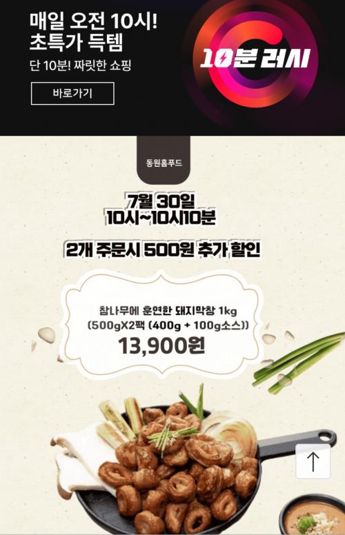 [11번가] (10분러시) 동원홈푸드 참나무 훈연 돼지막창 1kg (13,900원/무료) > 국내핫딜