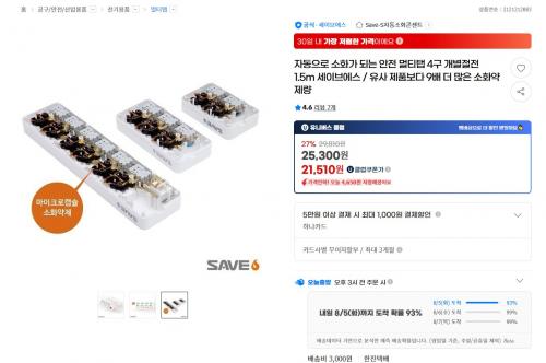 [지마켓] 자동으로 소화가 되는 안전 멀티탭 4구 개별절전 1.5m 세이브에스 (유클 21510원/3000원) > 국내핫딜