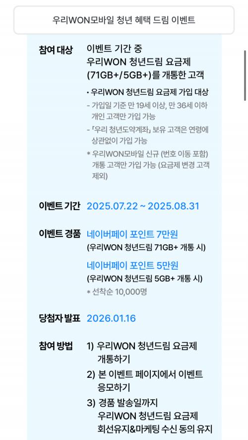 청년드림 가입 시 N페이 7만원혜택도 있습니다.