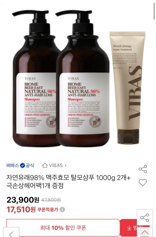 맥주효모 들어있고, 1L 대용량이라 오래 쓰기 좋겠어요
