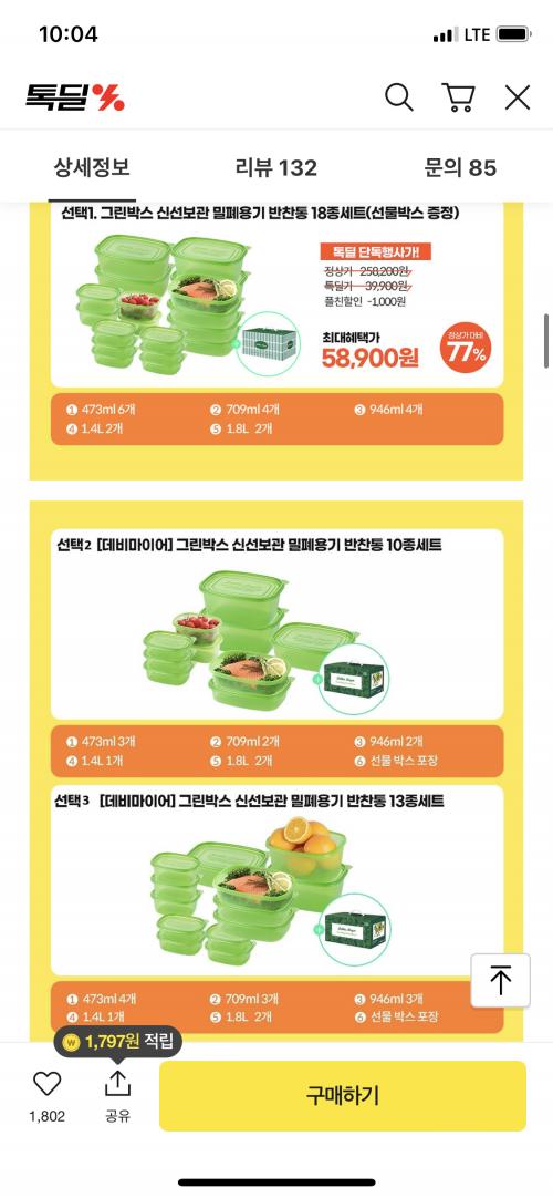 1.4L 2개, 1.8L 2L 3개 구성에 선물박스 포장까지 해 줘서