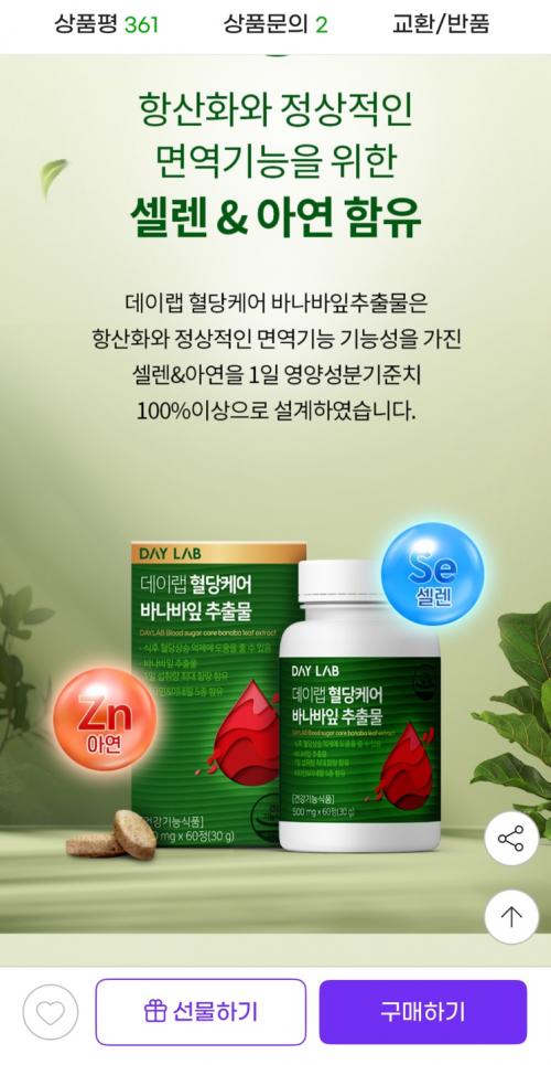 [지마켓] 데이랩 혈당케어 바나바잎 추출물 60정 x 3박스 (13,200원/무료) > 국내핫딜