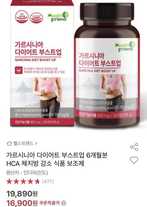 [옥션] 탄수화물 커팅제 가르시니아 6개월분 (16,900원/무료)