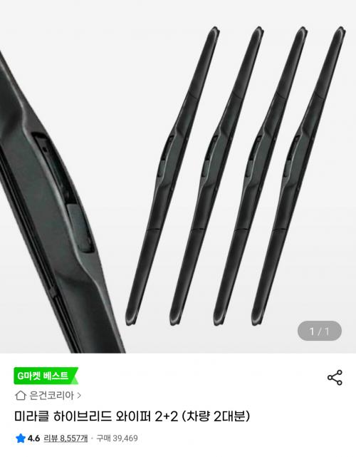 [G마켓] 미라클 하이브리드 와이퍼 2+2 구성 (8,930원/무료)