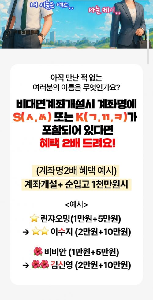 신규고객 이벤트로 이름에 초성 ㅅ ㄱ 들어가면