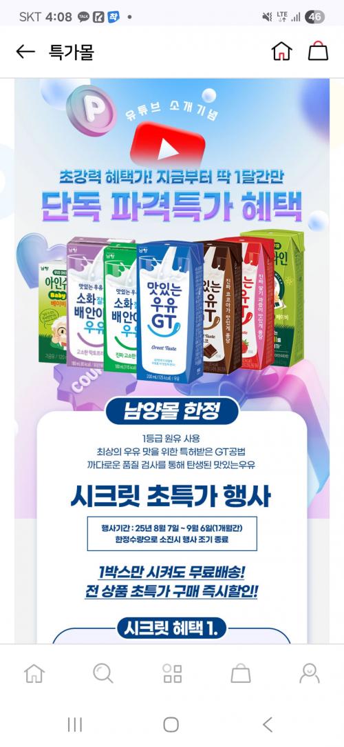 [남양몰] 맛있는우유 GT 200ml 24팩 (10,900원/무배) > 국내핫딜