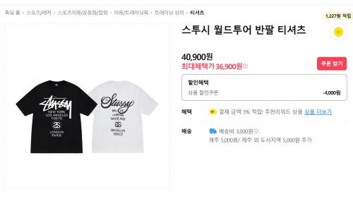 [카카오톡딜] 스투시 월드투어 반팔 티셔츠 화이트/블랙 쿠폰적용확인 (36,900원/4000원) > 국내핫딜