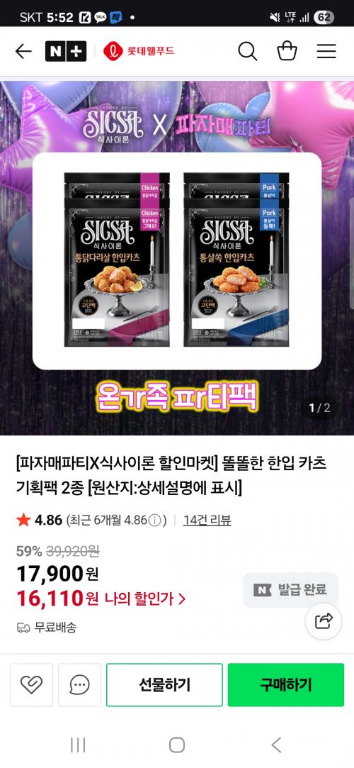식사이론 한입카츠 기획팩 55% 할인이라 가격 괜찮네요..