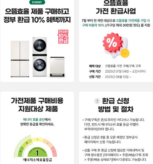 1등급 제품 구독시 최대 30만원 정부환급 있습니다