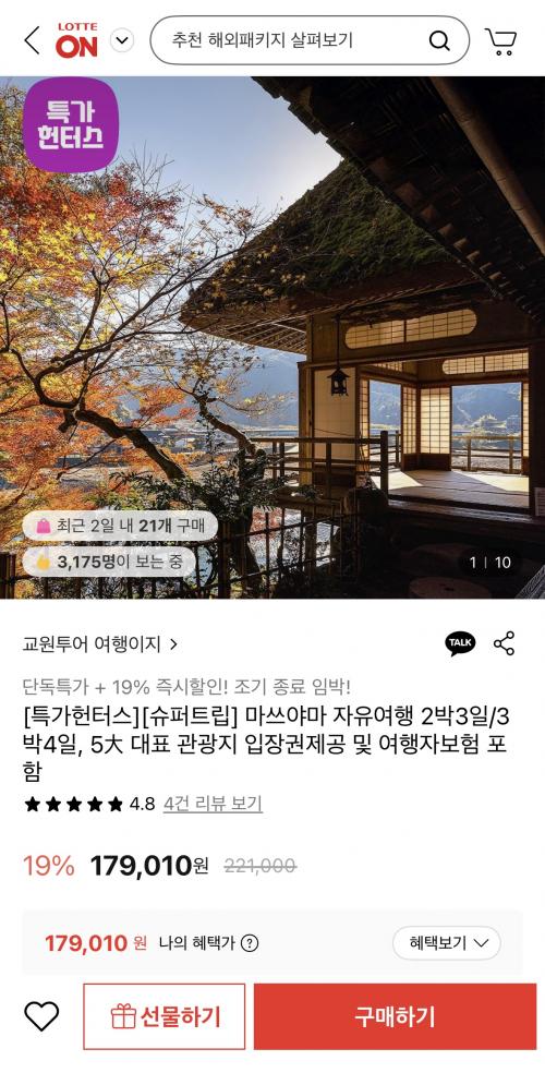 [롯데온] 마쓰야마 자유여행 2박3일/3박4일 일정 (179,010원~/무료)