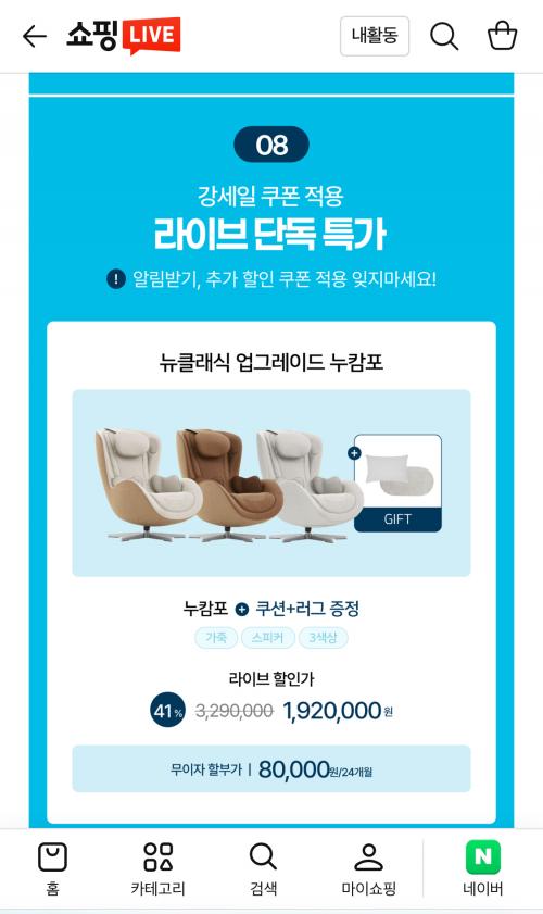 [네이버]누하스 누캄포 루나 (1,680,000원/무료) > 국내핫딜