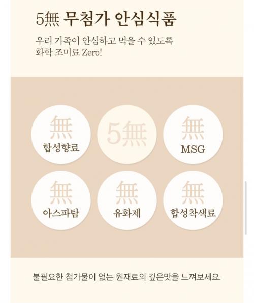 국산 19가지 천연재료로 만든 코인육수고 화학조미료나 아스파탐 첨가 없는 5무 무첨가 식품입니다