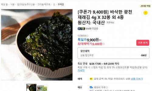 [카카오] 광천 재래김 4g 32봉 / 광천 재래김 4g 64봉 / 돌자반 35g 10봉 (9,400원~/무료) > 국내핫딜