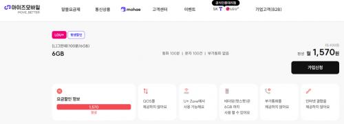 [아이즈모바일] (평생) lg망 6GB 100분 100건 (1,570원/무료)