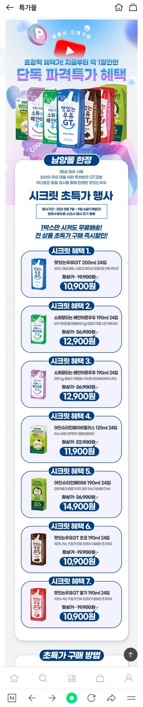 [남양몰] 맛있는우유 GT 200ml 24입 (10,900원/무료배송) > 국내핫딜