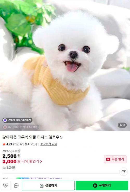 [네이버] 강아지옷 땡처리 (2,000/3,000)