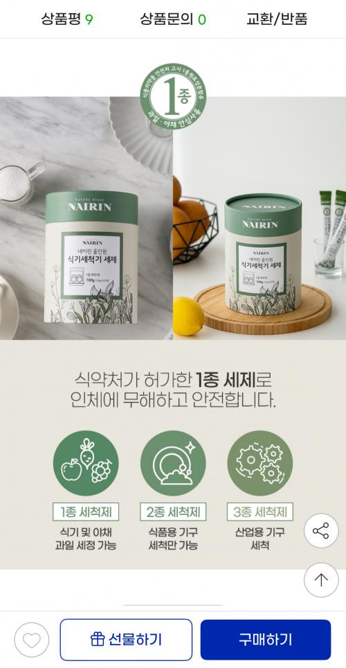1종세제라 인체에 무해해서 야채 과일 세정할 때도 좋습니다