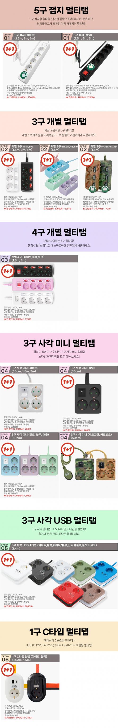 [지마켓] 러그박스 납작 멀티탭 개별 절전 스위치 미니 USB 디자인 고용량 멀티콘센트 1구~5구 1+1 (12,560원/3,000원)