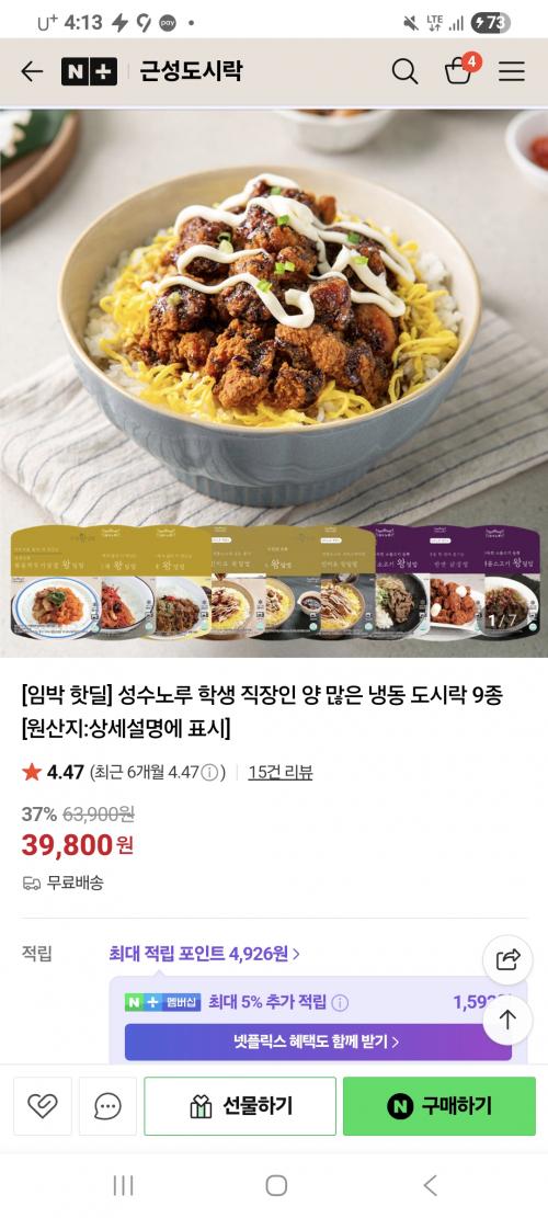 [네이버] 직장인도시락 9종 임박특가 (39,800원/무배)