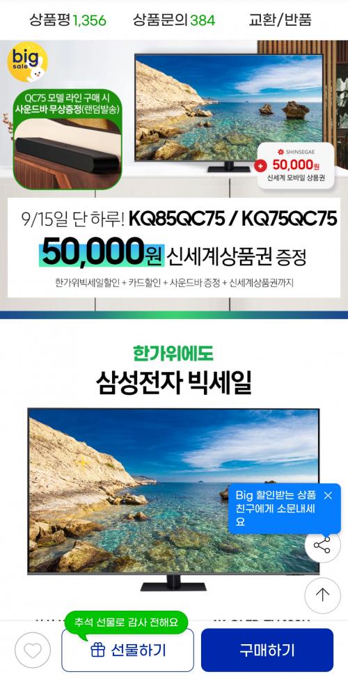 QLED 85인치 TV 빅스 할인 입니다.