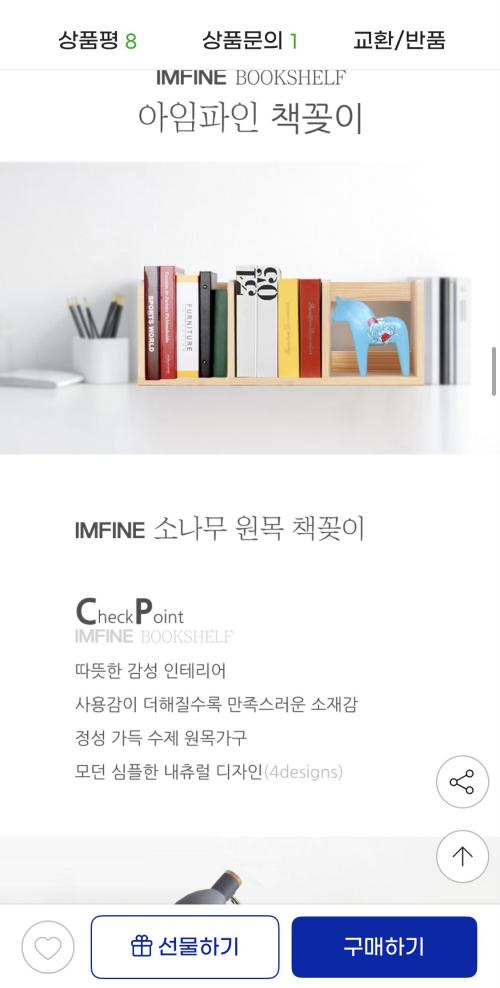 내구성 좋은 소나무 소재의 책꽂이에요