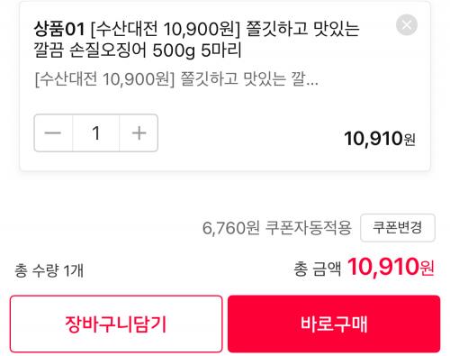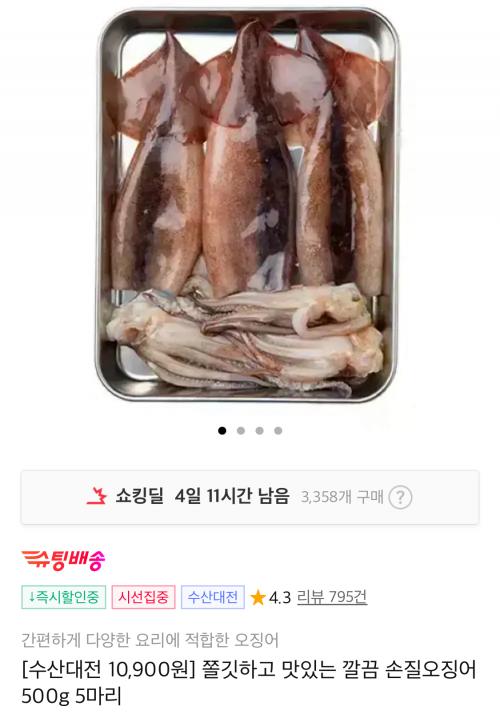 [11번가] 쫄깃하고 맛있는 깔끔 손질오징어 500g 5마리 (10,900원/무료) > 국내핫딜