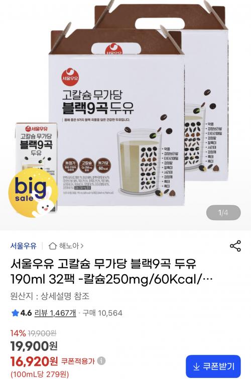 [G마켓] 서울우유 고칼슘 무가당 블랙9곡 두유 190ml 32팩 (16,920원/유배) > 국내핫딜