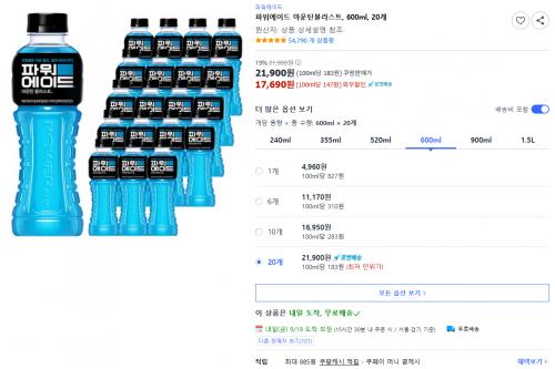 [쿠팡] 파워에이드 마운틴블라스트, 600ml, 20개 (17,690원 / 무배) > 국내핫딜