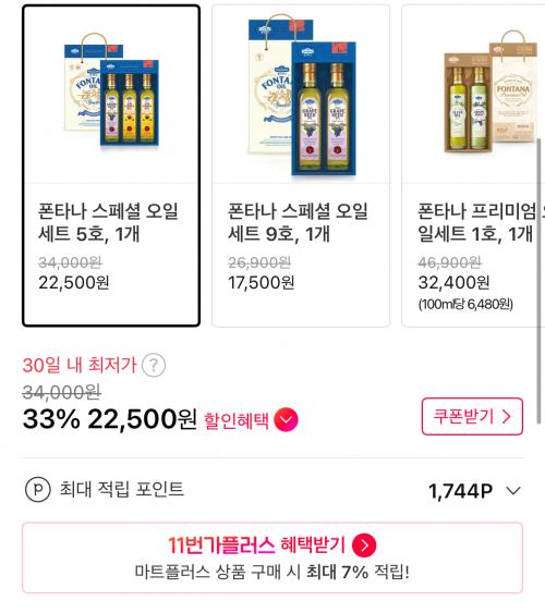 [11번가] 폰타나 스페셜 오일세트 5호 1개 (22,500원/무료)