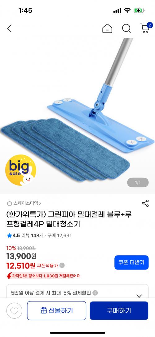 걸레가 4장이라 좋네여