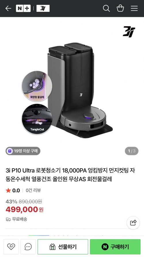[네이버] 3i P10 ULTRA,G10+ 로봇청소기 명절 프로모션 (329,000원~/무료) > 국내핫딜