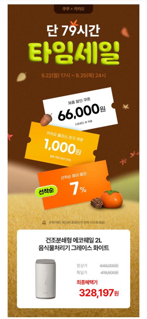 [카카오] 쿠쿠 강력분쇄 에코웨일 음식물처리기 (328,197원/무배)