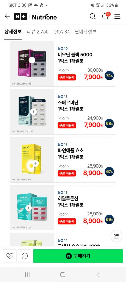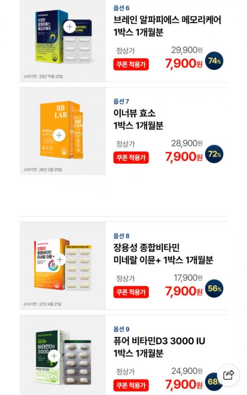 24,900원 / 오메가3 6,900원 / 효소 7,900원입니다