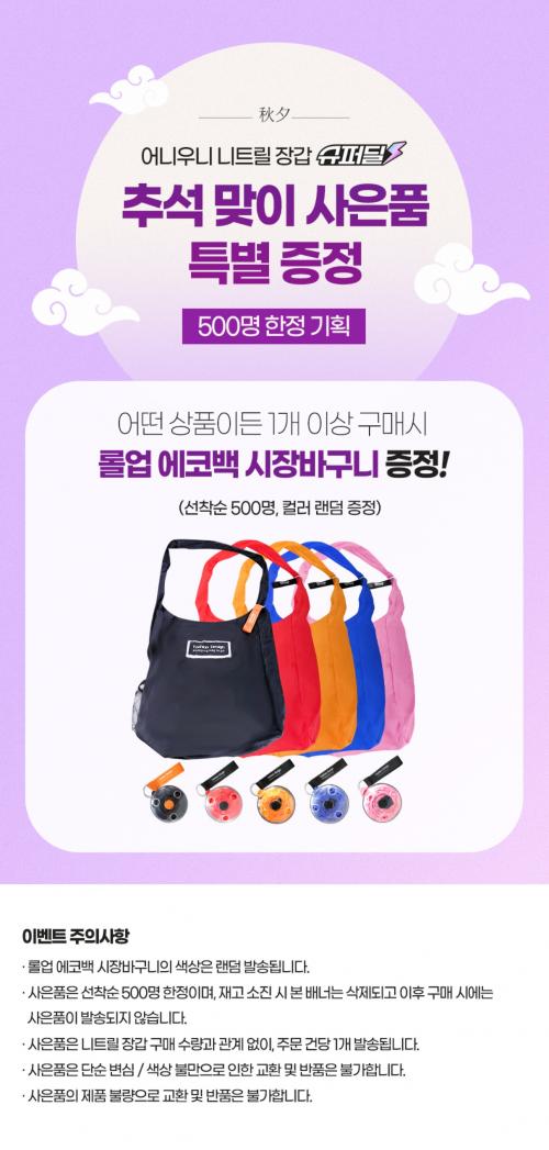 [지마켓] 식품용인증 니트릴 장갑 300매+롤업 에코백 증정 (10,120원/무배)