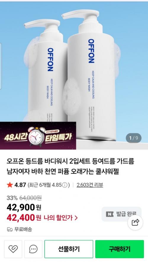 이번에 오프온 바디워시 추석특가로 2입 5세트 사면 1세트 더 챙겨줘요