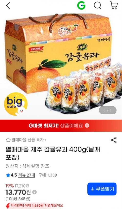 천연감귤농축액이 들어가서 아이 어르신 할거없이 좋아하는 간식입니다