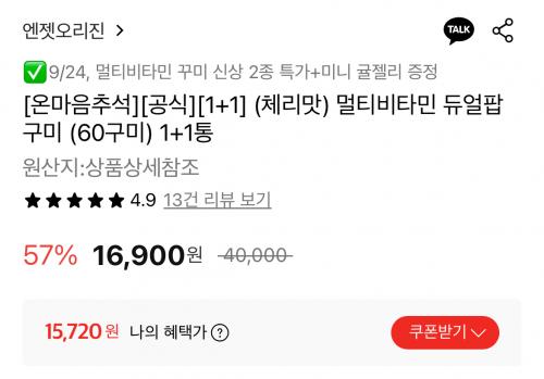 [롯데온] 듀얼팝 멀티비타민 구미 1+1통 총 120구미 (15,720원/무료) > 국내핫딜