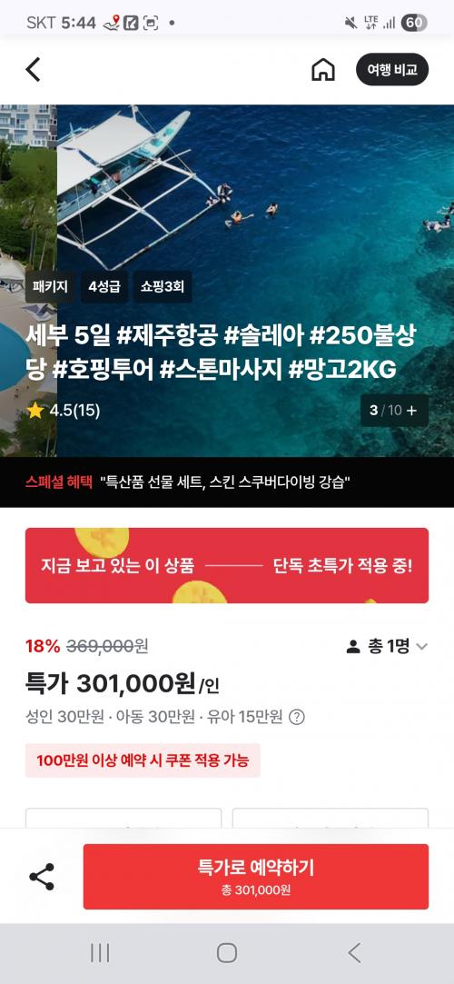 호핑투어, 마사지, 망고 2kg 포함이고 일정도 괜찮은 것 같아요~