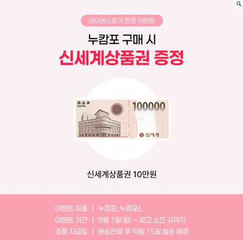 누캄포L 구매시 신세계 상품권 10만원 증정하고,
