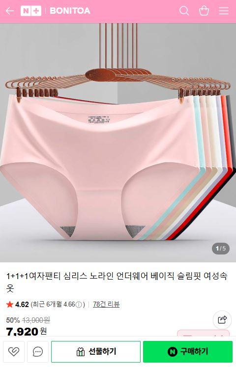 [네이버] 무봉제 심리스 여성팬티 3매입 (6920원/무배)