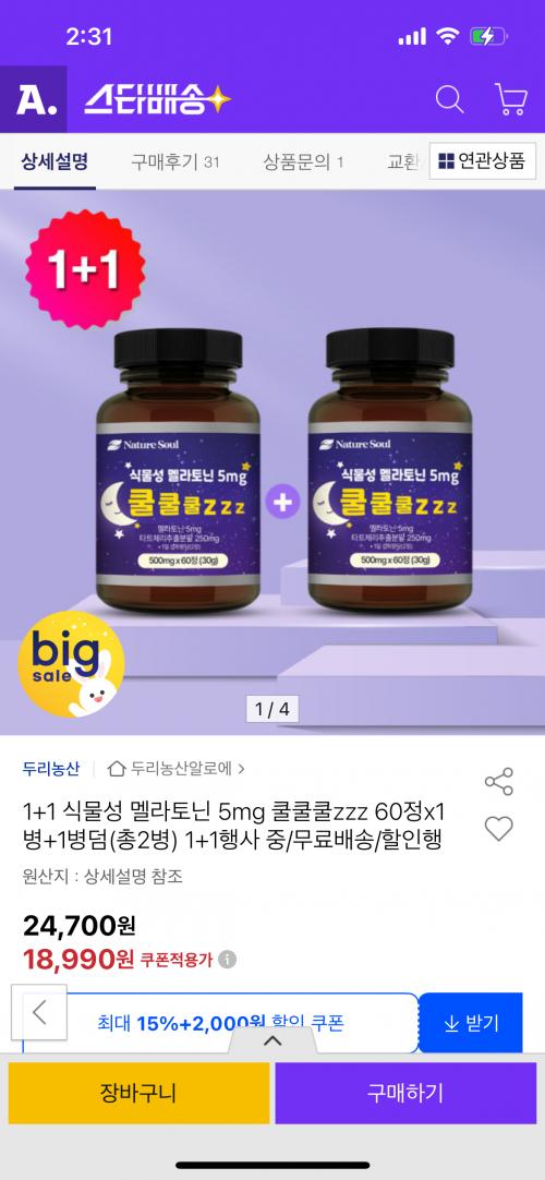 [옥션] 식물성 멜라토닌 60정+60정 (18,990원/무료)