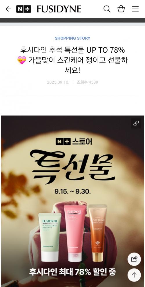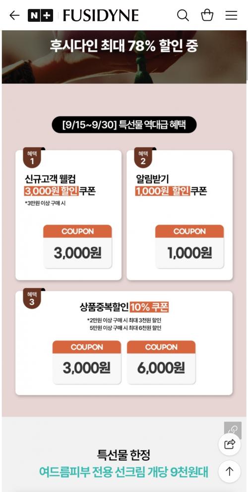 추석맞이 후시다인 스킨케어 최대 78퍼센트