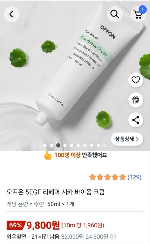 오프온 시카크림 골드박스 타임딜로 9,800원 무배입니다