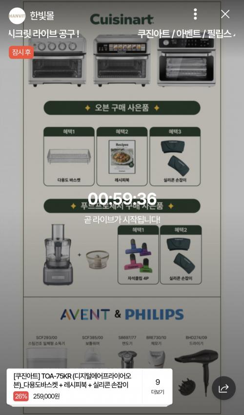 [한빛몰] 쿠진아트 오븐 3종 / 아벤트 소독기, 워머, 필립스 면도기 제모기, 드라이기 등 다양 (다양/무료) > 국내핫딜