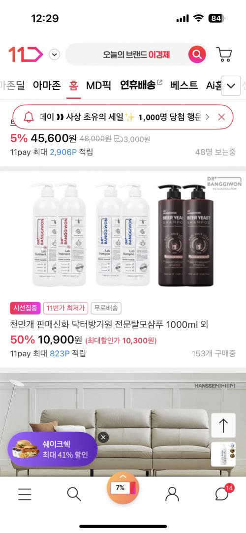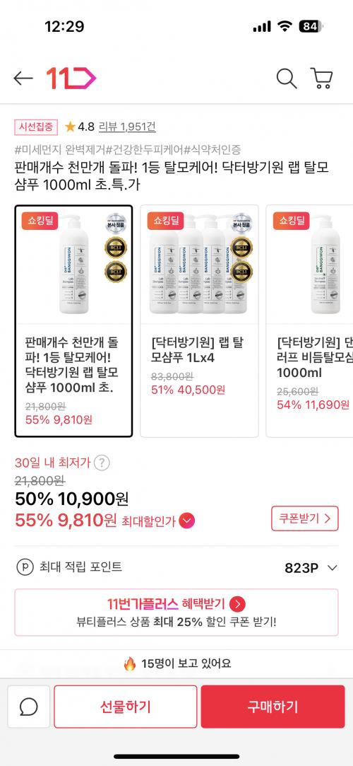 탈모샴푸로 유명한 닥터방기원 랩 탈모샴푸 11번가에서 할인중이네요